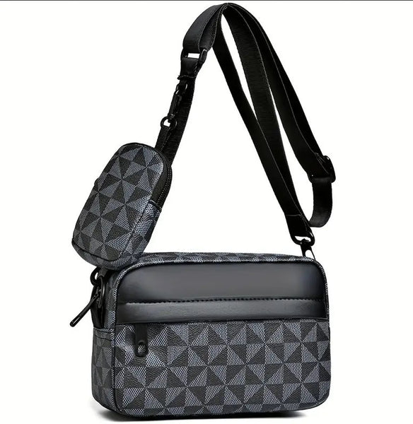 Unisex Geometric Checkered/Triangles Crossbody Bag (2 Colors Available)