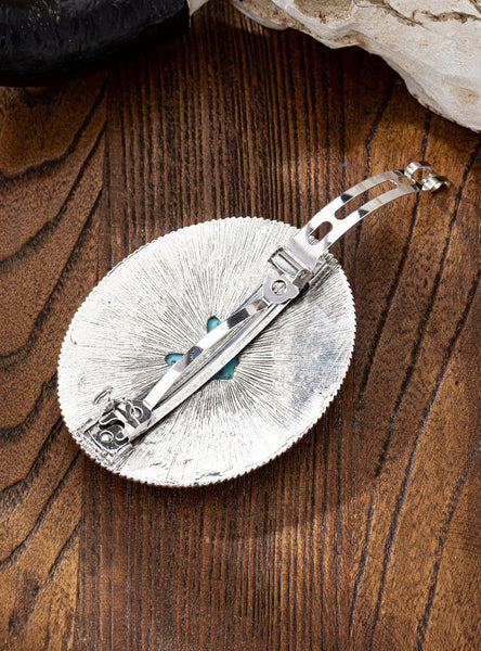 Western Style Silvertone Hair Clip / Barrette with Faux Turquoise Heart Stone