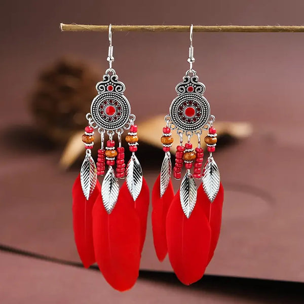 Boho-Chic Elegant Feather Dangle Earrings (7 Color Choices)