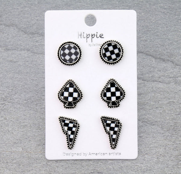 Checkered Round Necklace with 3 Pairs of Earrings
