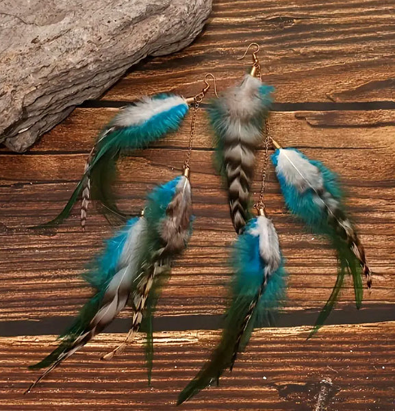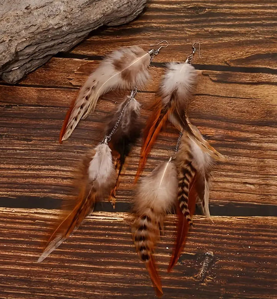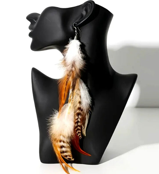 Boho Chic Long Dangle Feather Earrings - 2 Color Choices