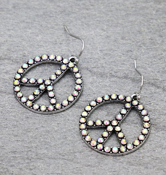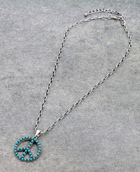 Small Peace Sign Necklace with Matching Earrings (2 Colors Available)