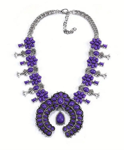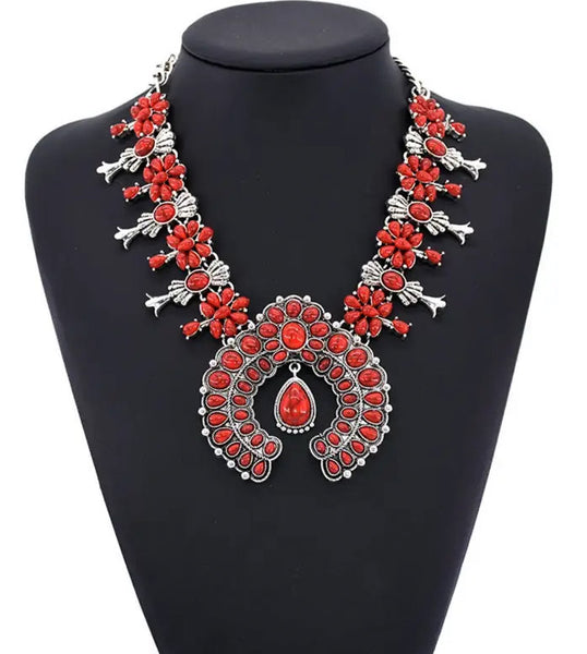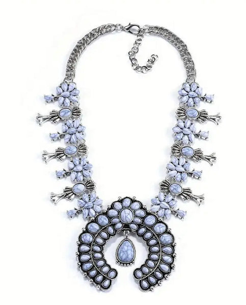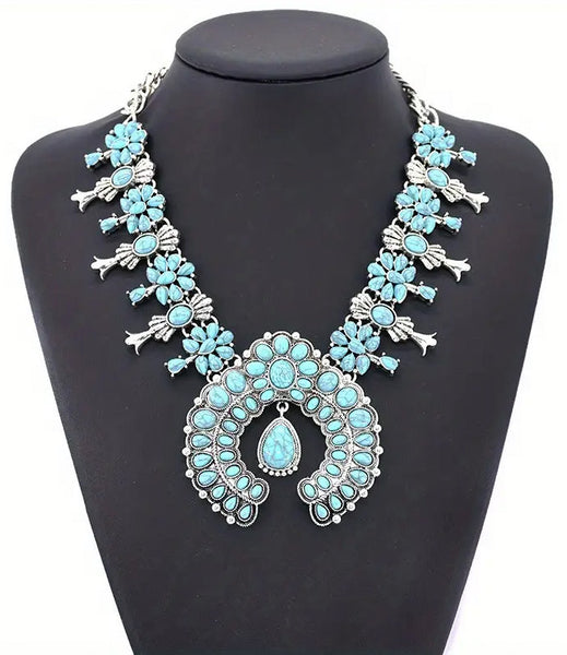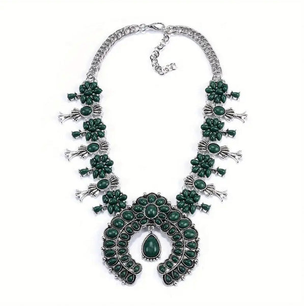 Squash Blossom - Silvertone - Floral Design with Faux Stones