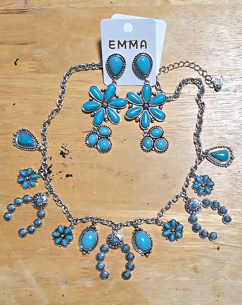 Western Squash Blossom Charm Necklace with Coordinating Earrings (3 Color Available)